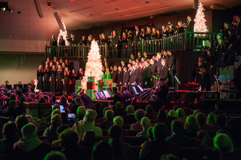 Catch a glimpse of the sparkling display of Christmas spirit at this year’s annual Christmas Spectacular! With a whole new lighting design and an outstanding performance of “A Christmas Gloria,” a new composition by BCM alumnus and professor, Daniel Van Gelderen, the Christmas Spectacular drew an overwhelming crowd from the community.